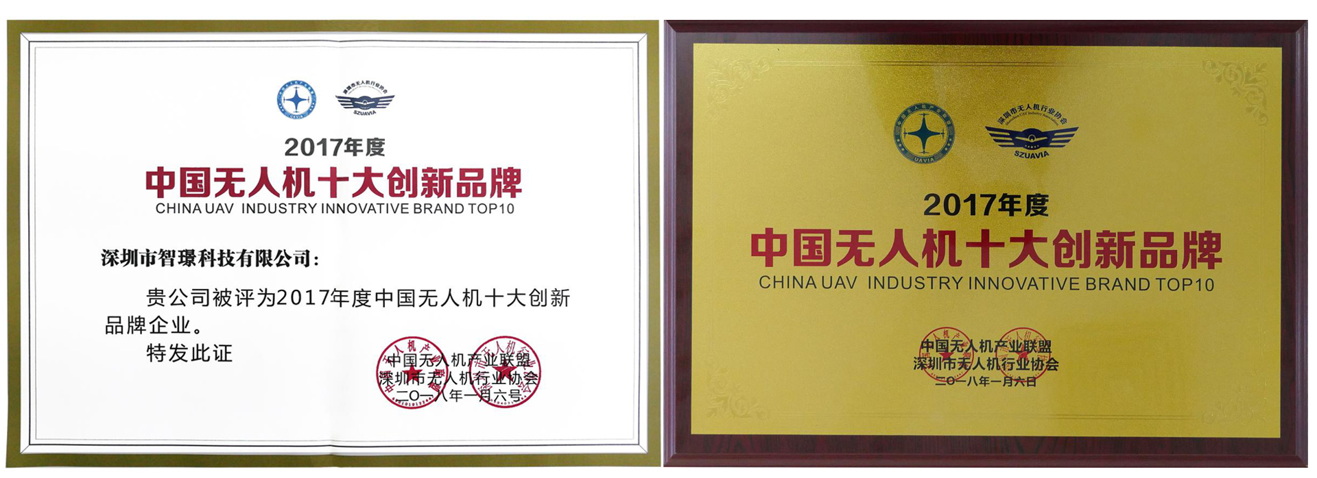 智璟科技榮獲2017年度中國無人機十大創新品牌