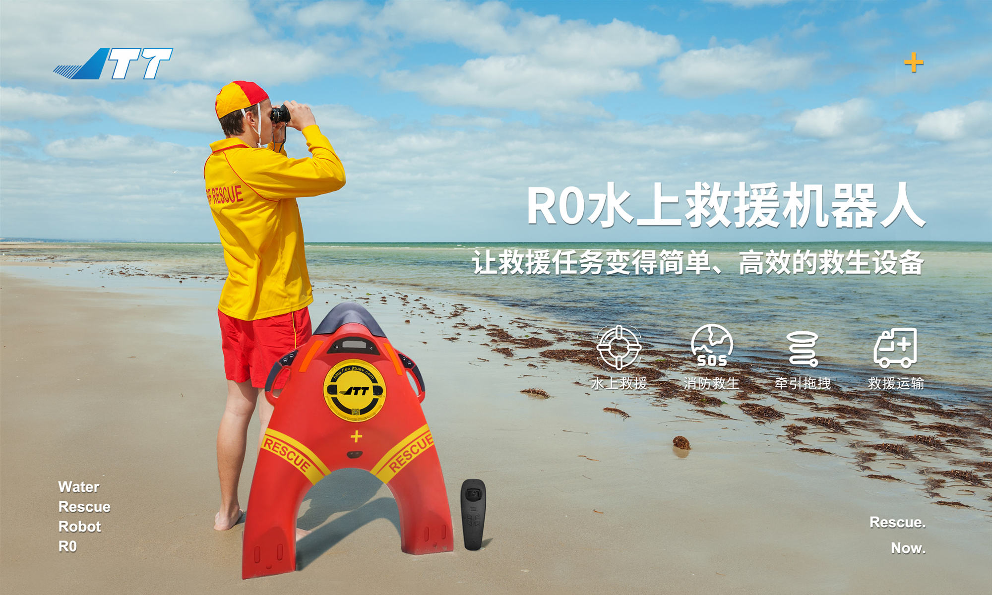 “R0”水上救援機器人采用電動螺旋槳推進動力,浮力可達75公斤(750牛),速度最高可達14.4公里/小時,續航最長30分鐘,快速安全,它可參與迅速救援、物資拖拽與補給,也可方便更多救援人員參與救援。