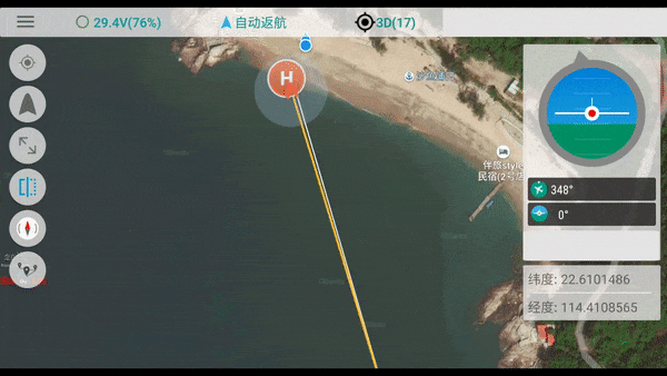 隨后可以打開遙控上的一鍵返航鍵,R1會自動回到出發地,不需其它操作,全程無人化運作