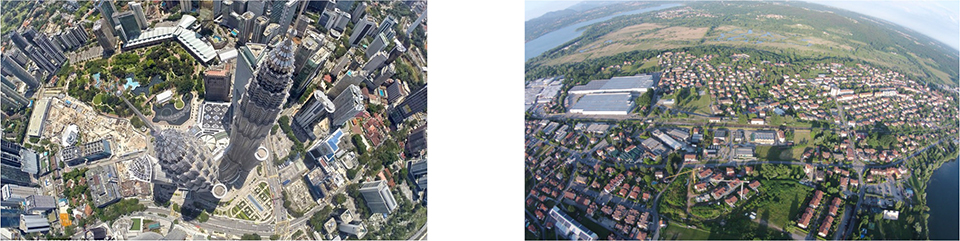 無人機的航拍照片和視頻合成為全景圖片技術,結合虛擬現實技術(VR),應用于房地產觀摩會和網上全景看房。