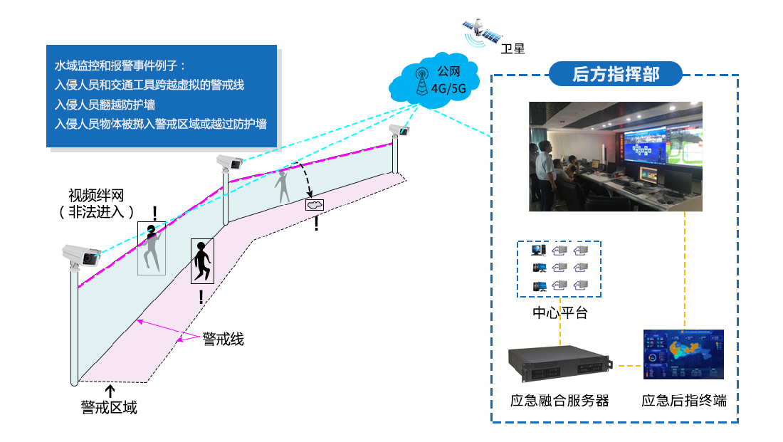 夏季是強降水的高發(fā)期,也是中小學生甚至是大人意外事故的高發(fā)期。在一些偏僻的江河、湖泊、水庫、水塘等地方,往往給安全監(jiān)管帶來巨大挑戰(zhàn)。水域救援系統(tǒng)具備無人機監(jiān)控喊話和AI智能攝像機人臉24小時的識別監(jiān)控能力,能夠快速捕捉人臉,以及越界偵測智能報警,對水域區(qū)域全覆蓋監(jiān)測,及時發(fā)現(xiàn)問題并且上報后端,派遣前端設備和監(jiān)管人員抵達現(xiàn)場予以救援,并保證安全。