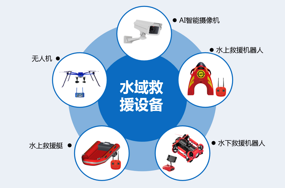 水域救援系統(tǒng)前端智能救援設備主要包括水域AI智能攝像機、空中救援無人機、水上救援機器人、水上救援艇、水下救援機器人等,組成從空中、水面、水下立體化救援系統(tǒng),應對不同的救援場景需求,所有前端智能救援設備均與前端指揮部及后端指揮中心組成一體,聽命于應急管理平臺的統(tǒng)一調(diào)度,讓指揮救援工作有序、有效地進行。