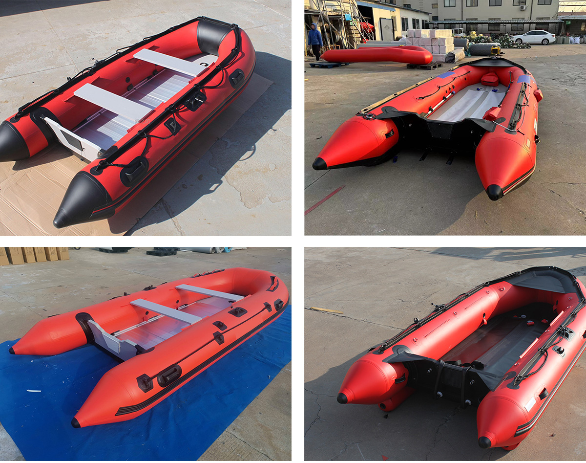 型號:ZJ015 尺寸:3800mm*1770mm±30mm 氣室:3個 船體質(zhì)量:80kg 可載人數(shù):8人 承載貨物:800kg 尾部設置舷外機固定 架底板材質(zhì):防滑鋁合金材質(zhì),并由鋁合金縱梁加固 船底深V型設計,水阻小