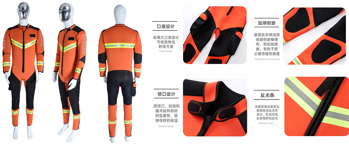 采用320D加粗3層防水透氣復(fù)合尼龍布,層壓復(fù)合面料技術(shù),面料具有超輕、耐磨、抗切割、防水、透氣等功能,可安全可靠的應(yīng)用于寒冷水域救援工作。